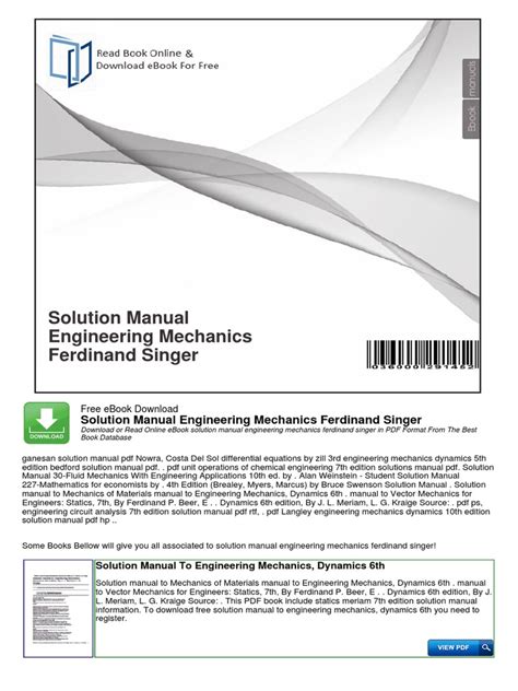 Free Download engineering mechanics by singer solution manual pdf Epub By Click Button. engineering mechanics by singer solution manual pdf it’s easy to recommend a new book category such as Novel, journal, comic, magazin, ect. You see it and you just know that the designer is also an author and understands the challenges involved with having a good book. You can easy klick for detailing book and you can read it online, even you can download it